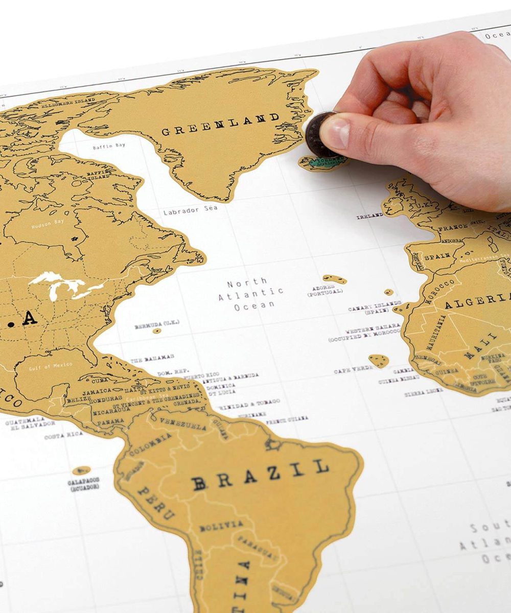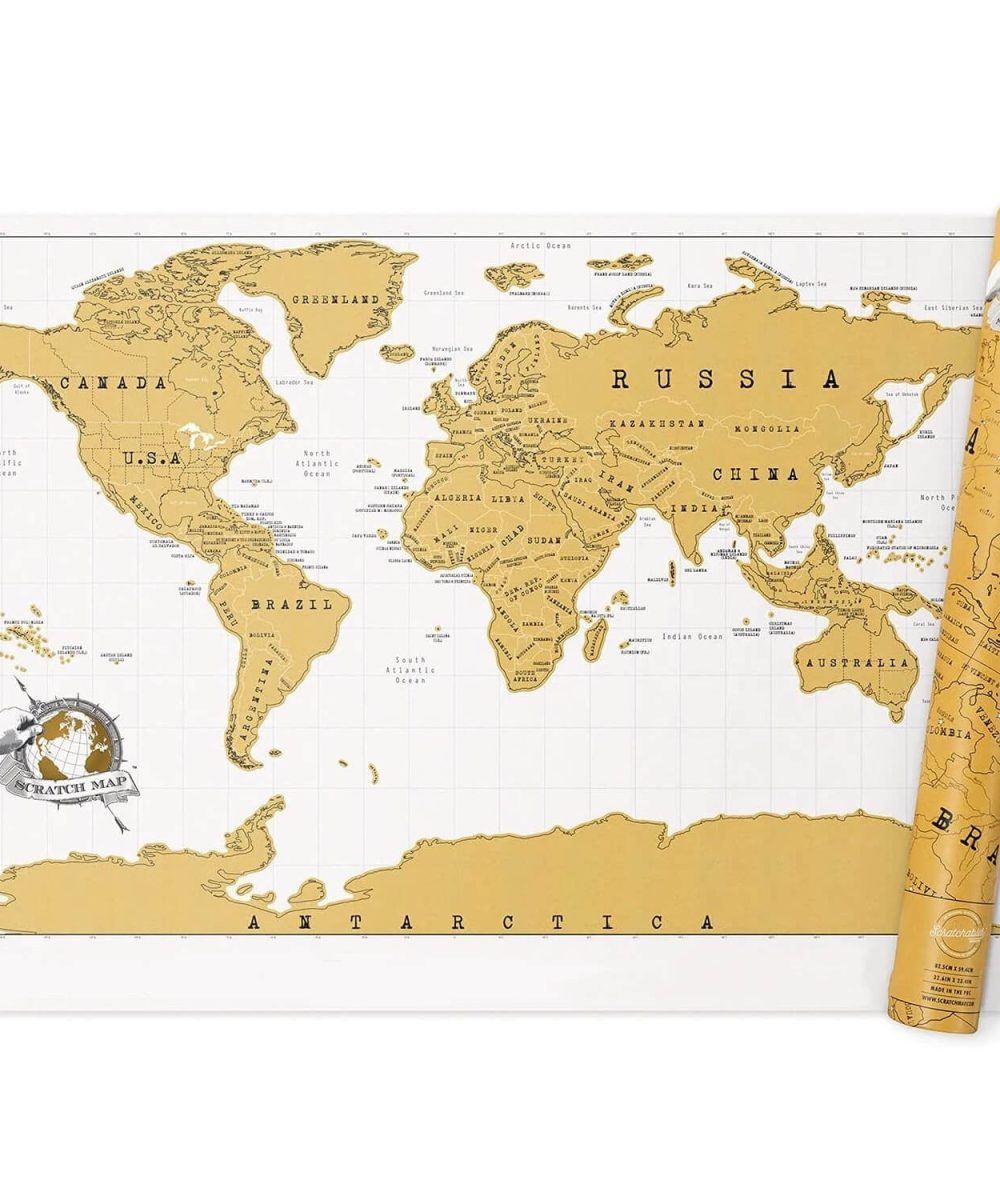 מפת העולם אקטיבית לתיעוד נסיעות מפה אקטיבית לתיעוד הנסיעות והטיולים שערכתם בעולם! גאדג'ט מדהים! קובעים את המפה על הקיר ובכל פעם שאתם חוזרים מטיול בעולם אתם מגרדים מהמפה את איזור הטיול שהייתם בו, עם אפשרות לרשום גם את תאריך הנסיעה, כך המפה יכולה להראות ולהזכיר לכם ולמשפחתכם את כל הנסיעות והטיולים שחוויתם. מתנה לגב, מתנה לאישה. מידות 88X52 ס"מ.