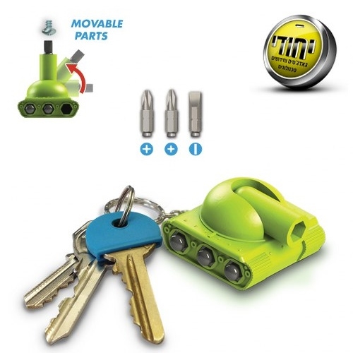 סט מברגים קומפקטי בצורת טנק עם מחזיק מפתחות גאדג'ט חמוד לכל אחד, סט מברגים קטן ובצורת טנק, יכול לפתור לנו בעיות קטנות ודחופות של סגירה או פתיחת בורג, בכל רגע ובכל מקום. המוצר חזק ואיכותי, מגיע באריזה מהודרת. מתנה מיוחדת לכל אחד.