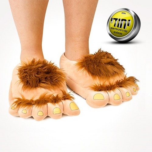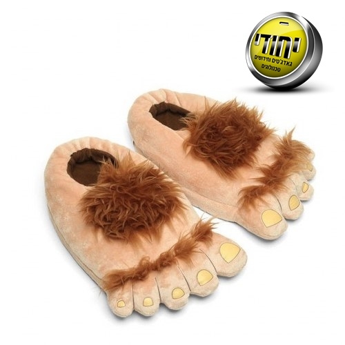 מתנה מדליקה לכל אחד. נעלי בית בצורת כף רגל של אדם קדמון, איש המערות. מצחיק ומדליק.