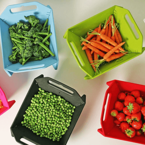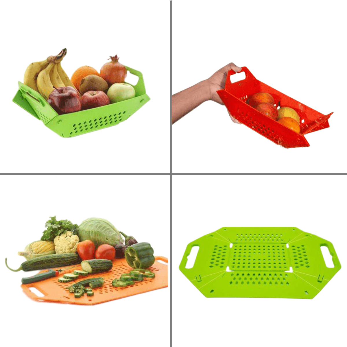 פתרון מקסים לאכסון ו-או שטיפה פירות וירקות! כלי אכסון מתקפל, ניתן להשתמש גם בקומות לנוחות השימוש וחיסכון במקום. אחד מתוך מגוון הגימיקים למטבח.