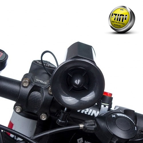 צופר המופעל באמצעות סוללה 9V (כלול בערכה). מתקן לחיבור לכידון האופניים כלול בערכה.